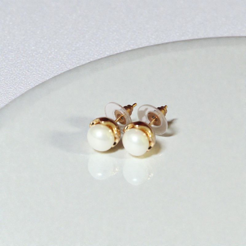 Delicate imitation jewelry studs featuring lustrous faux pearl