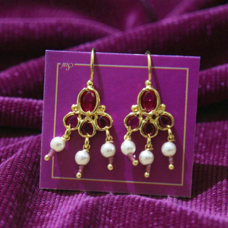 Ruby Pearl Chandbali Drop Earrings
