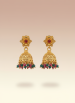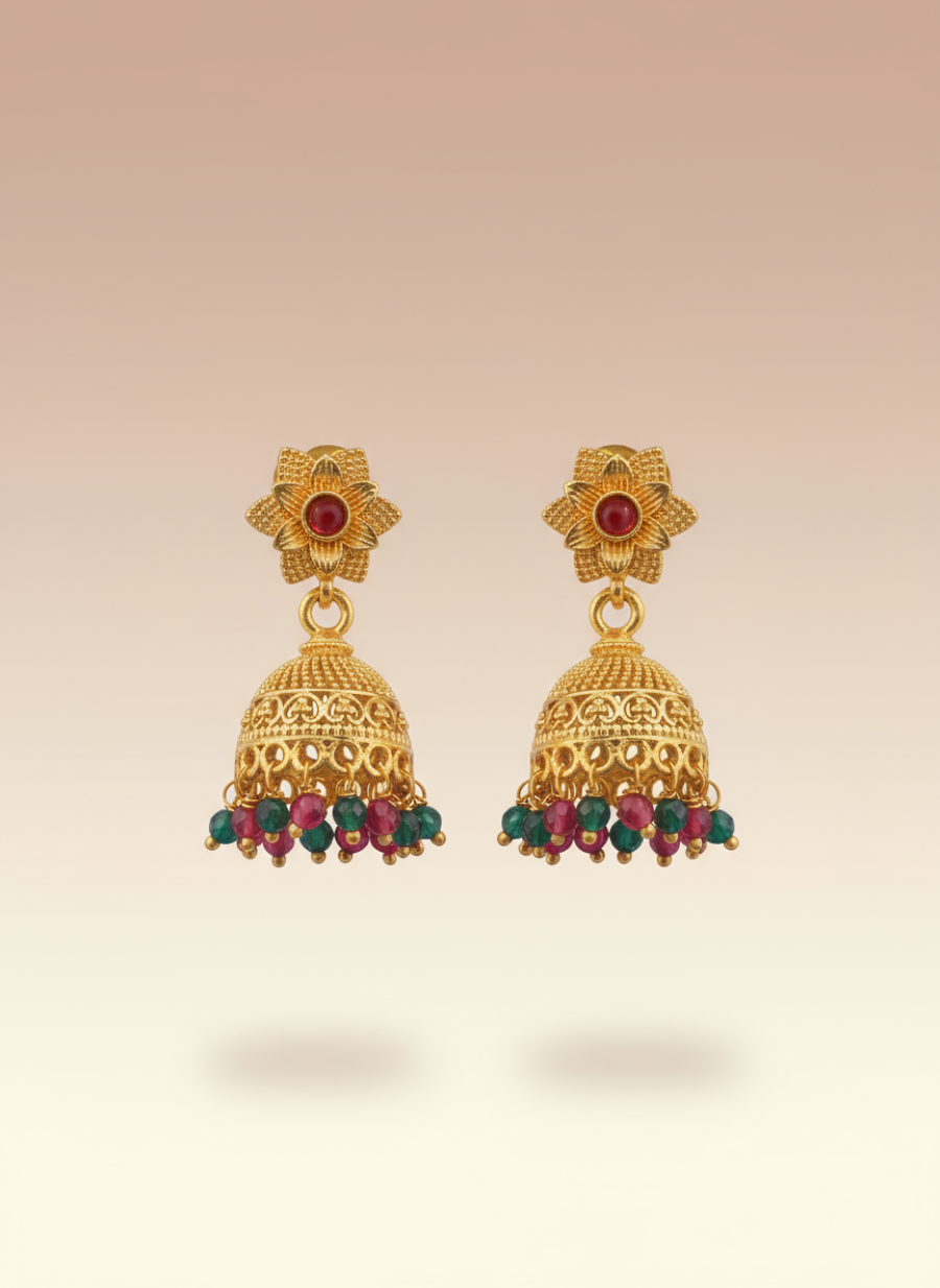 Traditional Gold-Plated Jhumka Earrings with Red and Green Beads