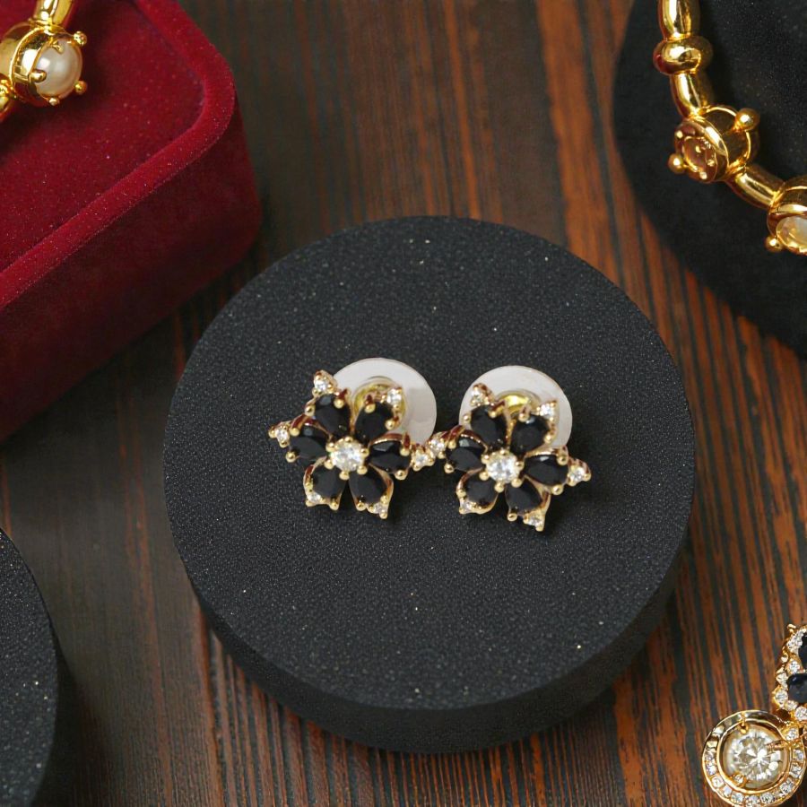 Stunning imitation jewelry featuring star-shaped designs with central black onyx beads