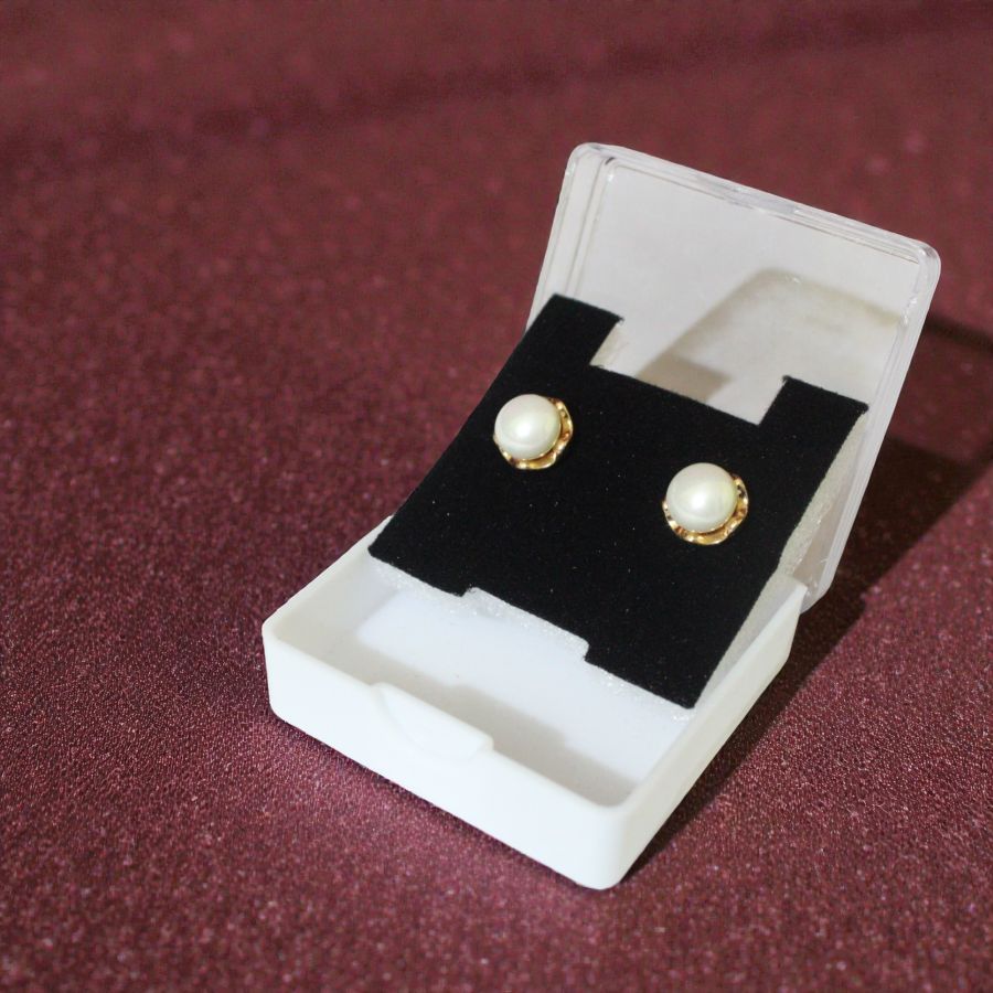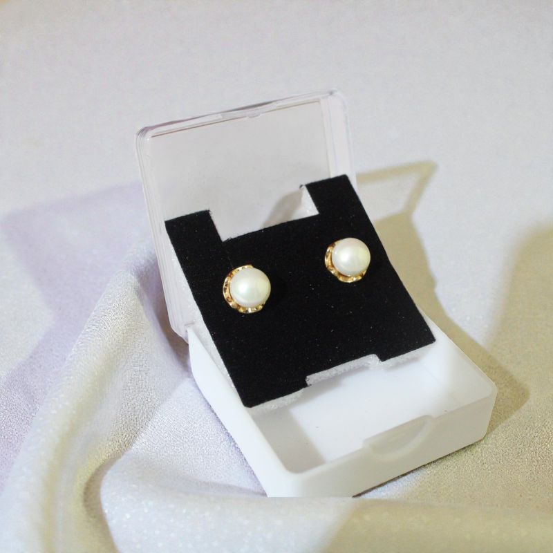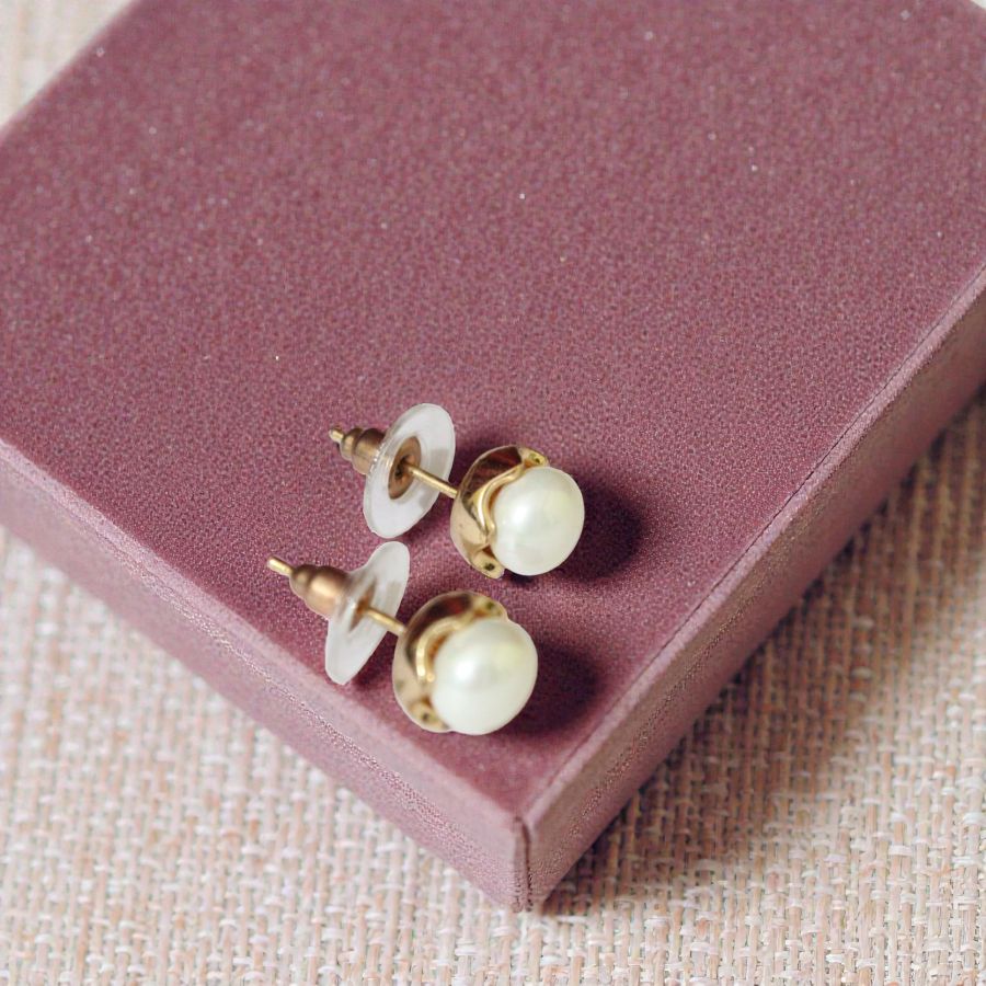 Delicate imitation jewelry studs featuring lustrous faux pearl
