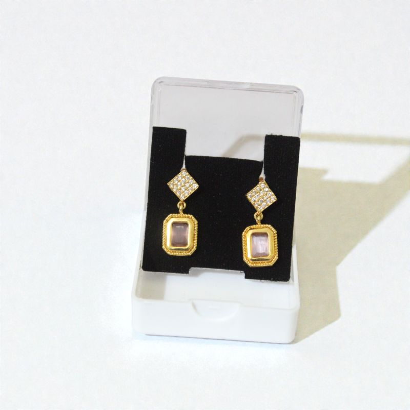 Rose Quartz Emerald Cut Drop Earrings