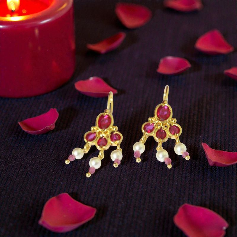 Ruby Pearl Chandbali Drop Earrings