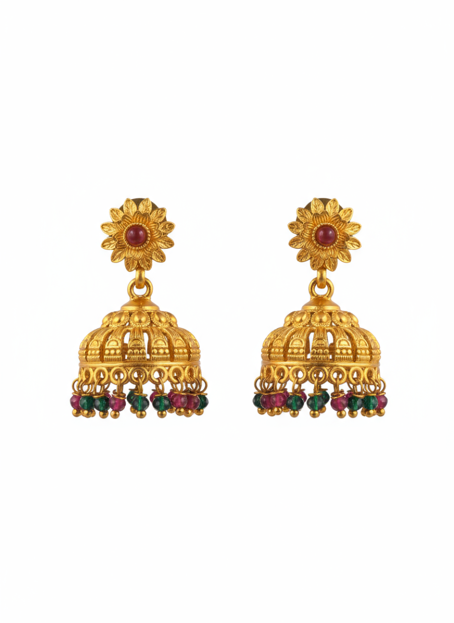 Traditional Gold-Plated Floral Jhumka Earrings with Beaded Drops